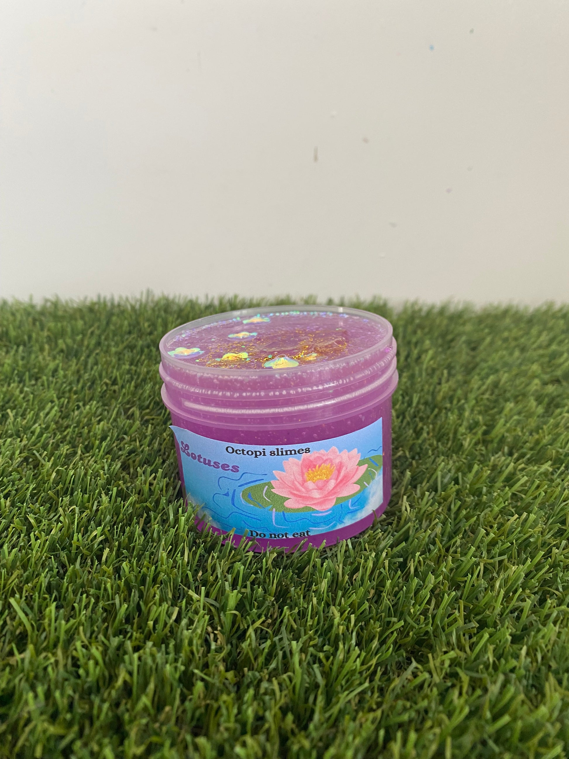 Lotuses is a bloomed jelly slime with various iridescent glitters scented sweet jujube.